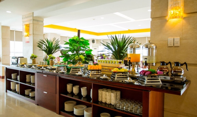 The restaurant is located on the 12th floor of the hotel, luxurious design and service, panoramic view of Da Nang center and Han river, server buffet, lunch, party,... with a capacity of up to 120 customers .