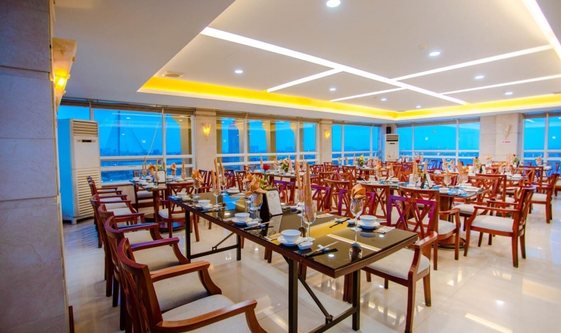 Nhà hàng tọa lạc tại tầng 12 của khách sạn, thiết kế sang trọng và ấm cúng, view bao quát toàn cảnh trung tâm Đà Nẵng và sông Hàn, phục vụ buffet, ăn trưa, tiệc...với sức chứa lên đến 120 khách.
